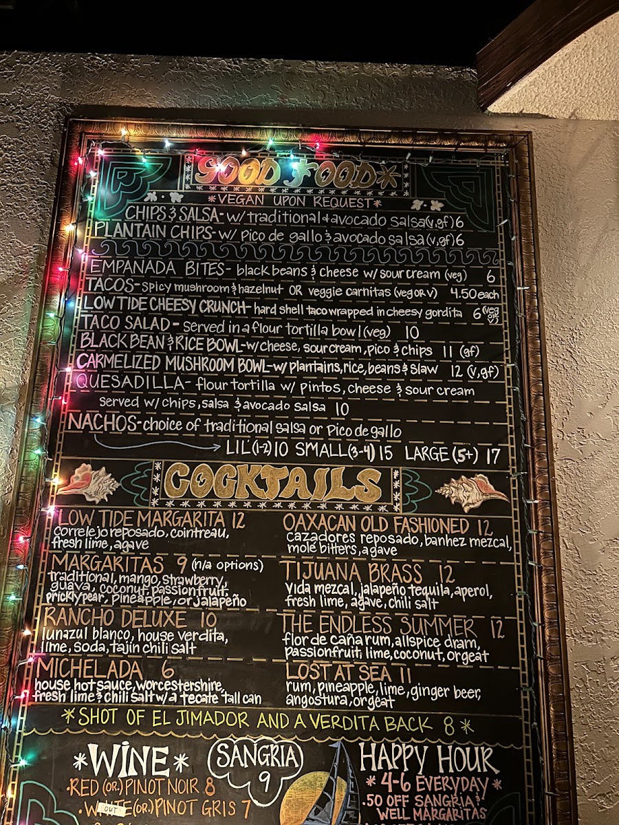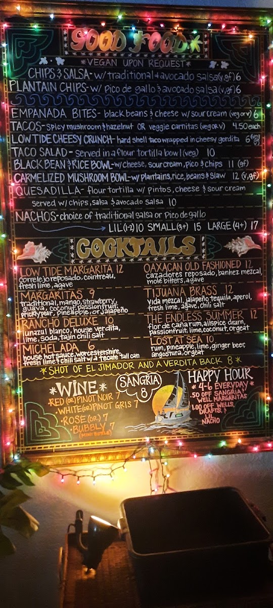 The Low Tide Lounge offers a menu centered around casual bites and comforting drinks, perfect for a relaxed evening or a low-key night out. The menu features a variety of shareable plates like small nachos topped with flavorful guacamole, hearty quesadillas, and satisfying empanadas—ideal for pairing with a cold drink. Whether you're settling in for some people-watching on the outdoor patio or catching up with friends, the food complements the approachable, dive-bar atmosphere.